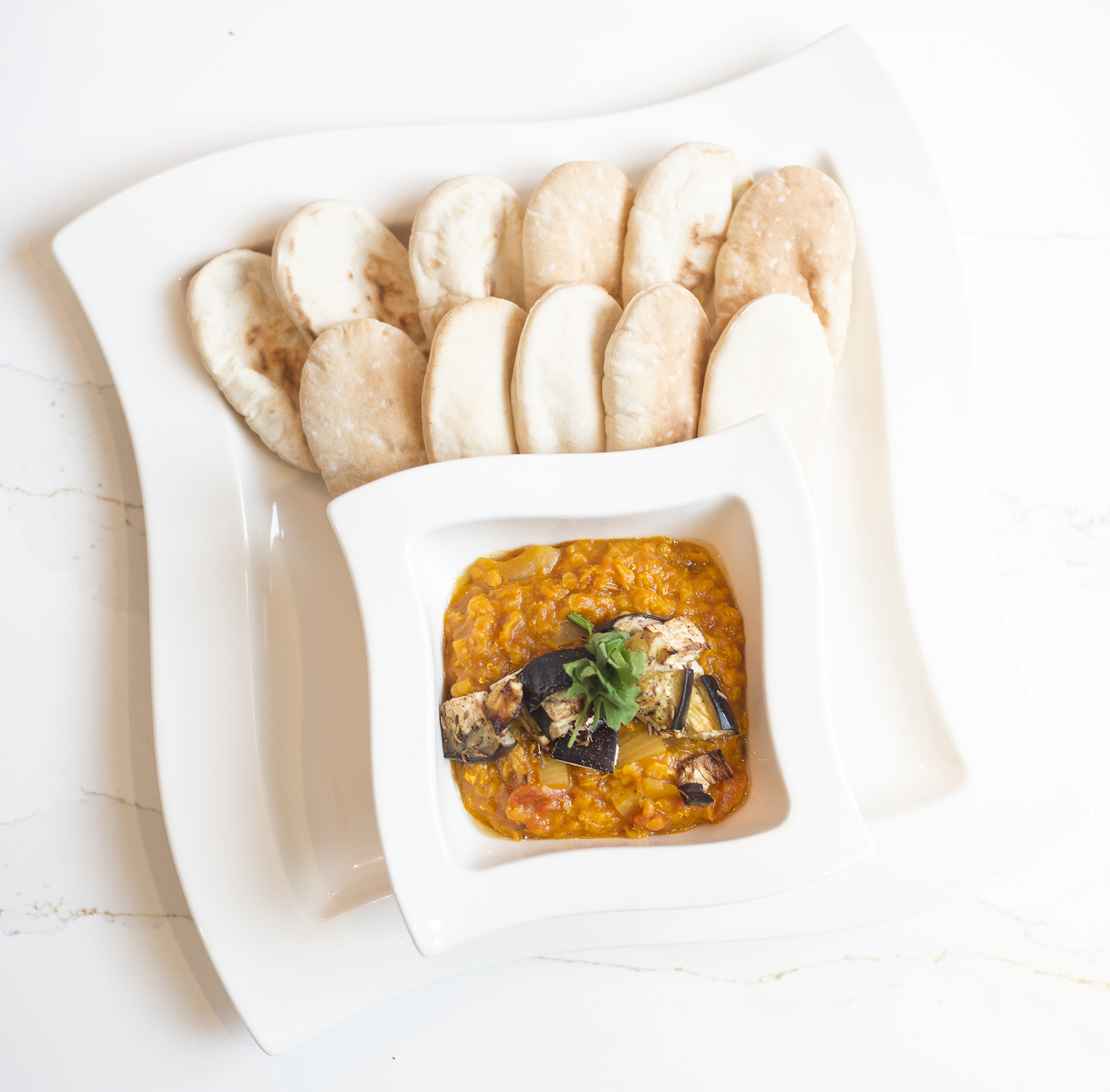 - Serve with the roasted aubergine scattered on the top plus some chopped coriander. Add a side of brown rice or quinoa and some naan bread.Can be frozen.