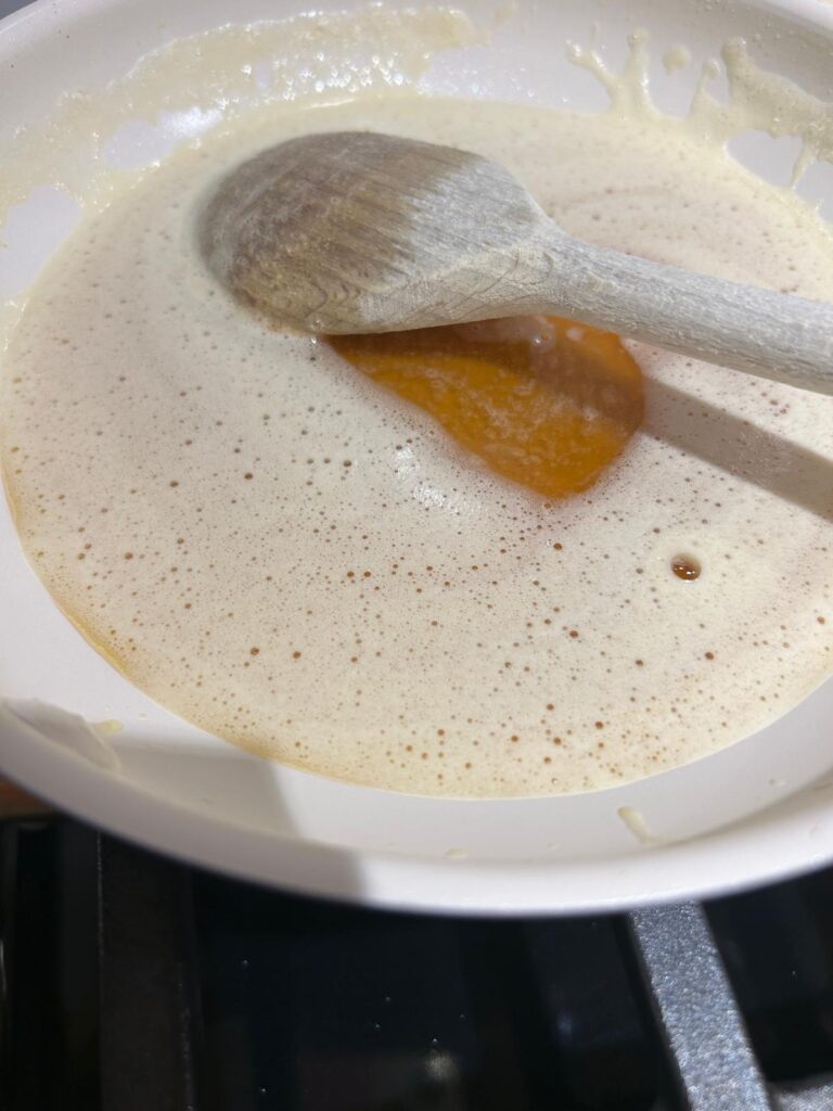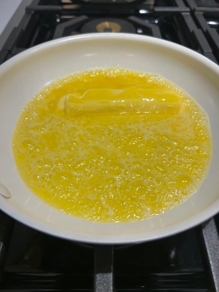 - Melt the butter in a skillet and allow to heat for 5–9 minutes until golden brown.