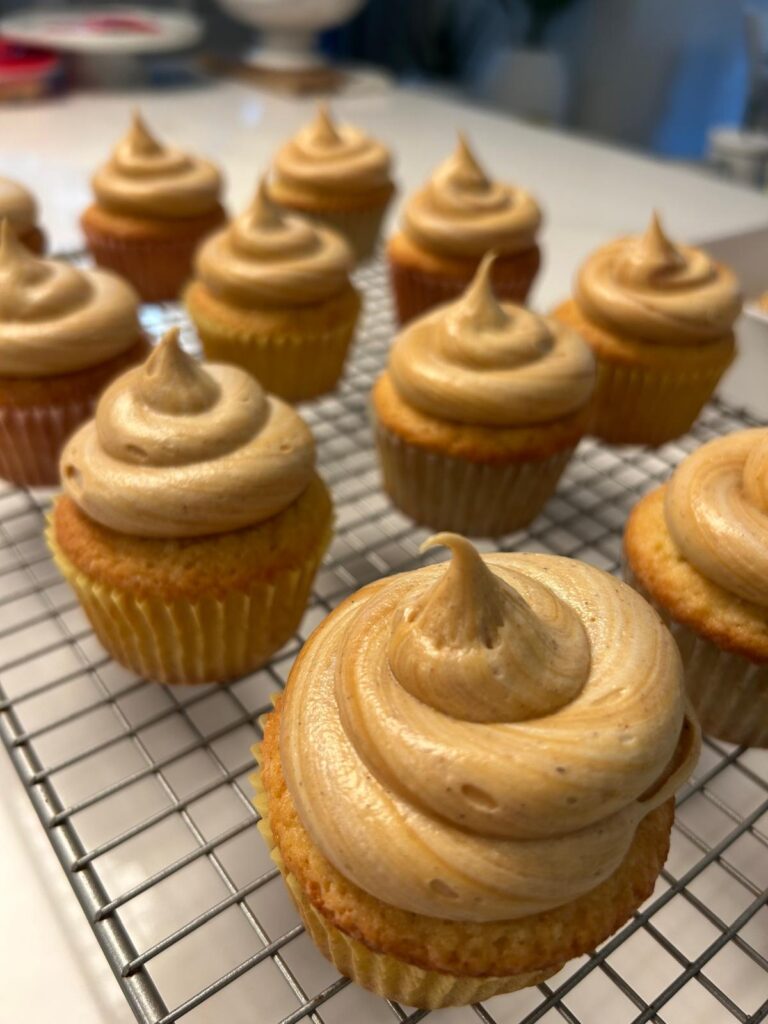 The real secret to these cupcakes lies in the balance of textures and flavours. The sponge itself is soft, light, and not overly sweet. By browning the butter first, you get that rich, nutty depth that takes the base to the next level. Then comes the frosting: whipped butter and sugar with swirls of dulce de leche for that creamy caramel goodness. A touch of pumpkin pie spice warms the whole thing up and makes each bite feel like a cozy autumn hug. Finally, the caramel corn topping is the crown jewel – sweet, crunchy, and a little whimsical. It’s the kind of decoration that makes people smile before they even take their first bite.