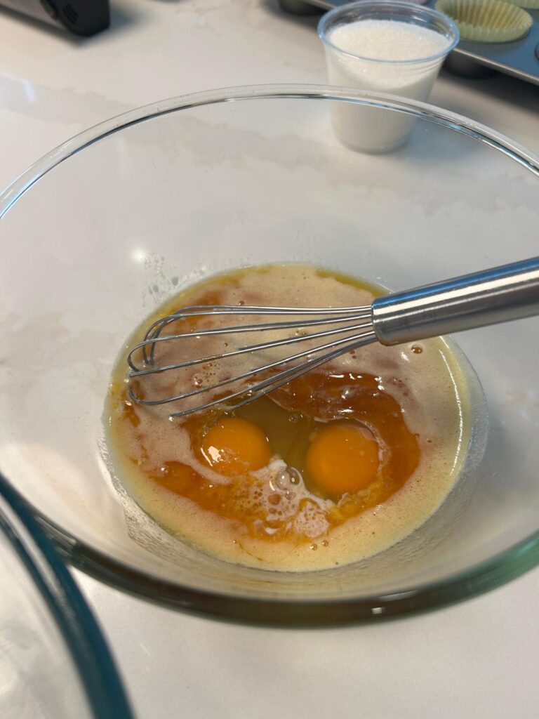 - Preheat the oven to 350ºF / 175ºC and line a muffin tin with paper liners.