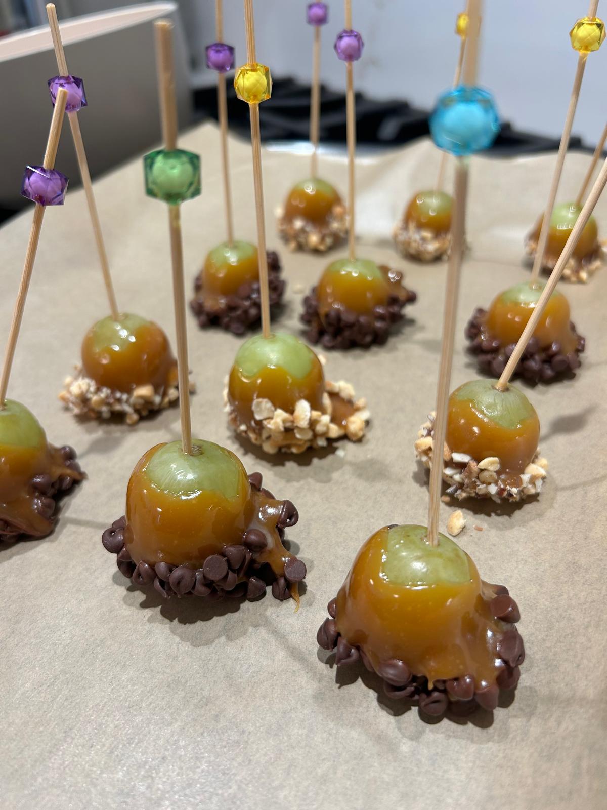 If you love toffee apples then these will be a hit. Bite sized delicious grapes covered in crispy caramel and dipped in your toppings of choice.