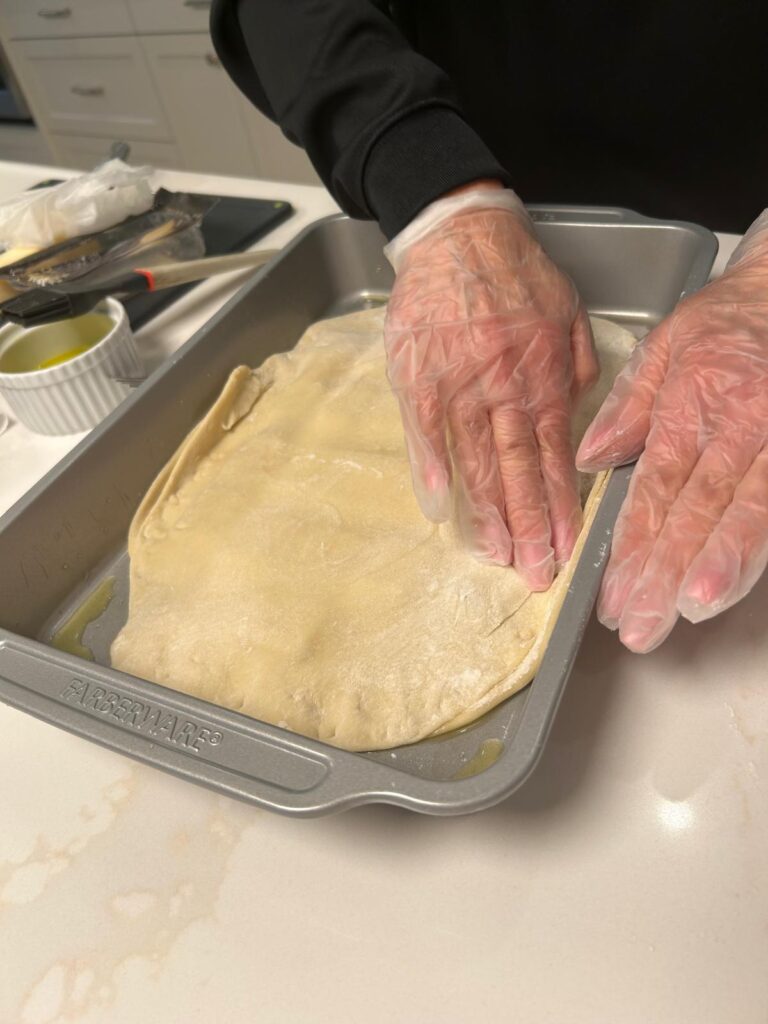• Unwrap the dough and divide into two.