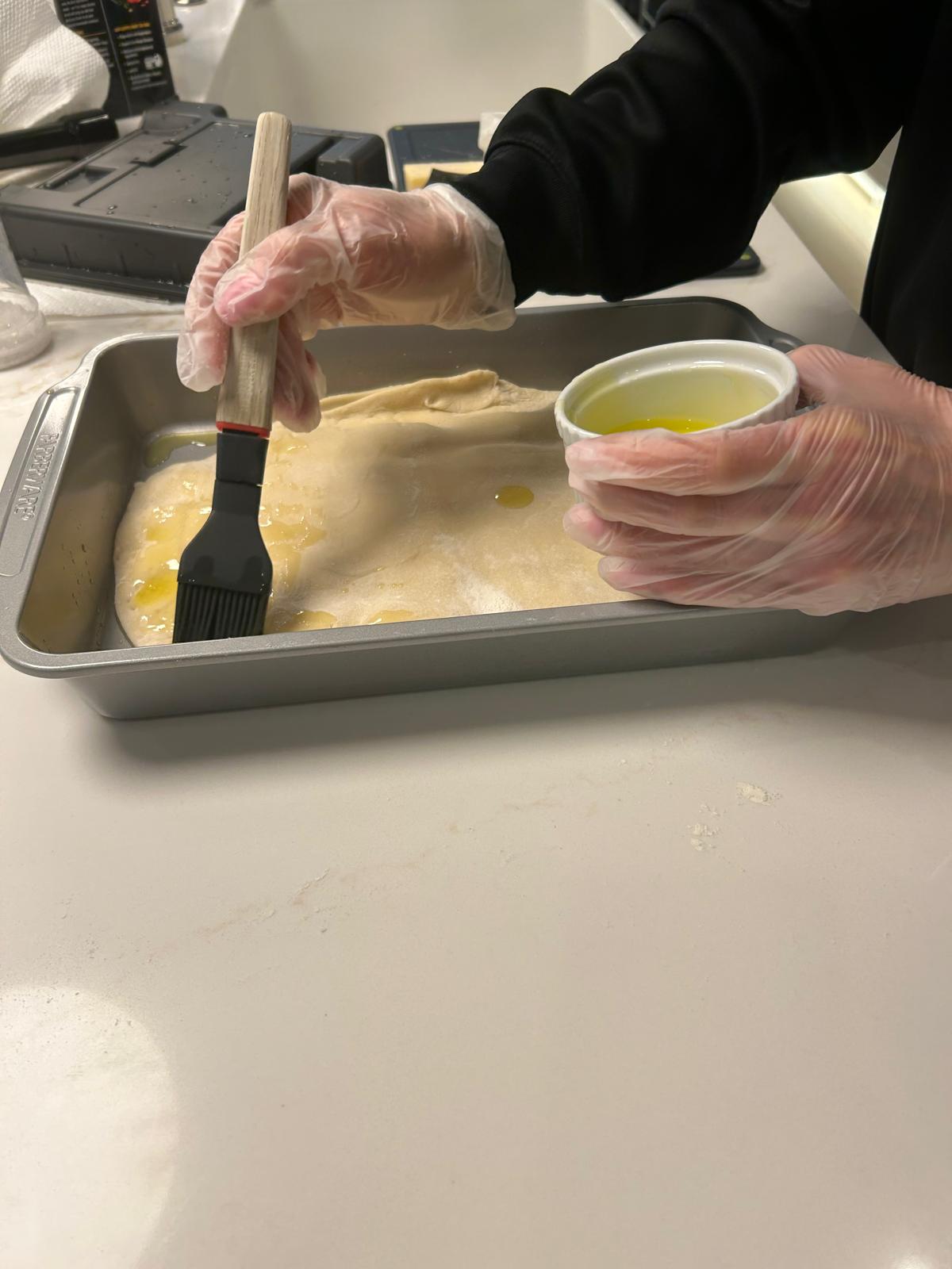 • Bake in the oven for around 13–14 minutes until the focaccia is golden brown.
