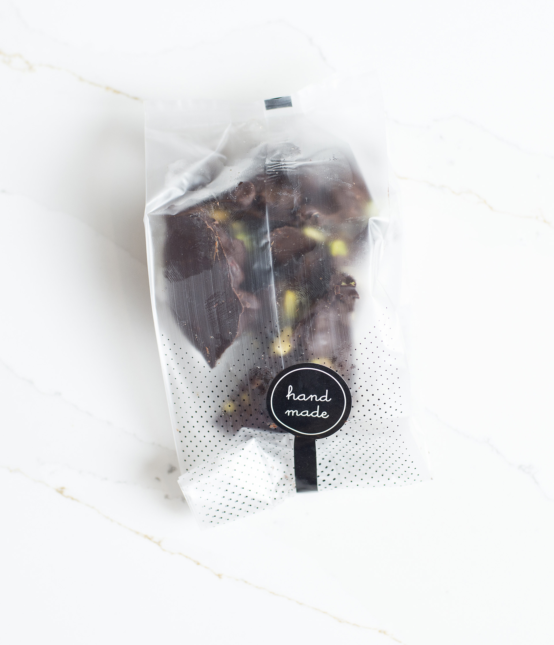 • Sprinkle over the extra chopped pistachios and cherries before placing in the freezer for one hour to set.