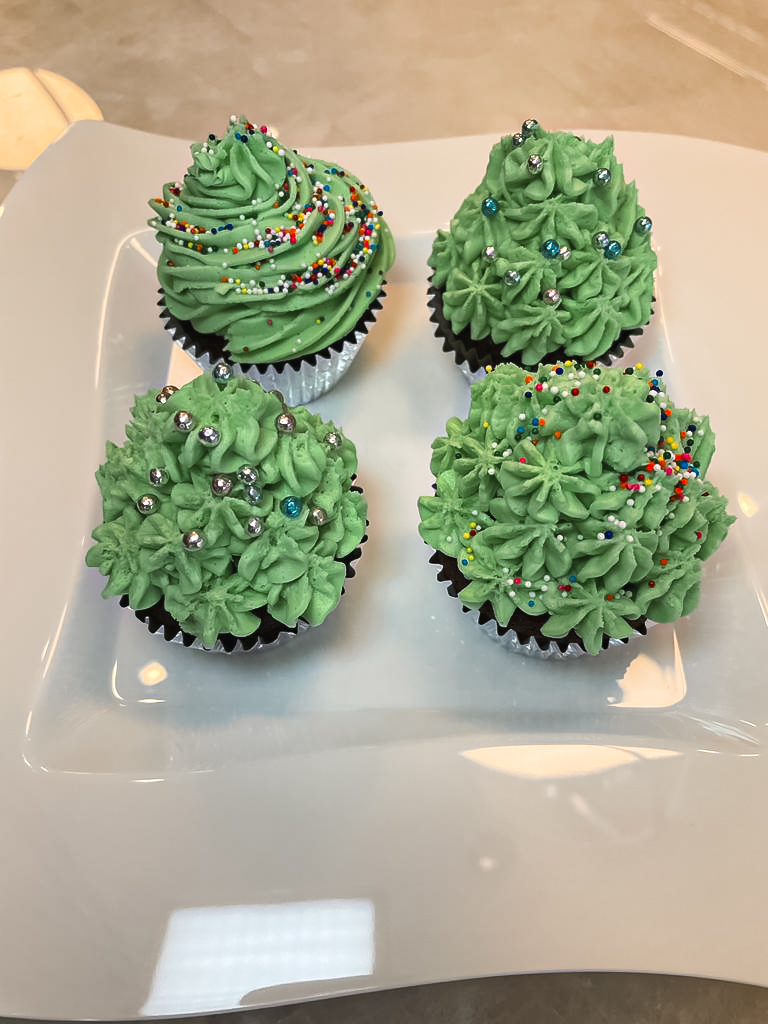 - If not adding in a strawberry simply pipe generously from the cake upwards to create a tree shape.Add festive sprinkles.