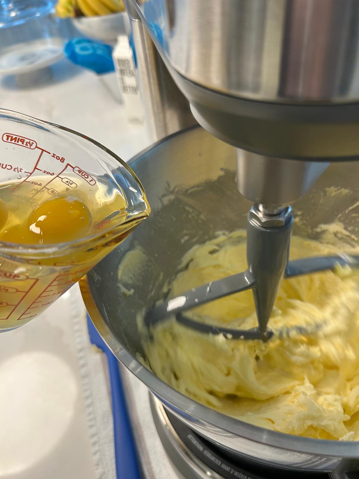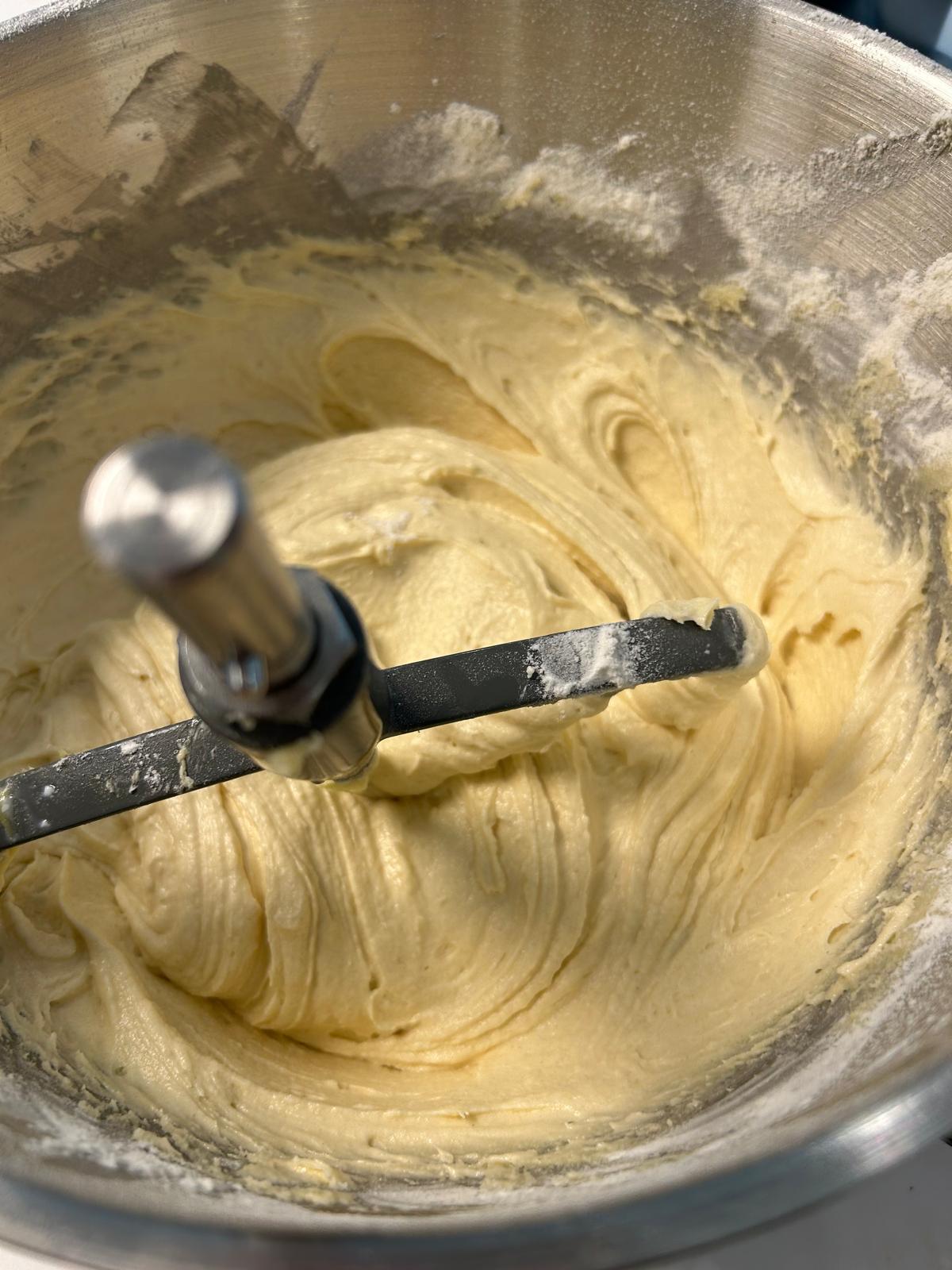 - In the bowl of an electric stand mixer, cream the butter and sugar until light and fluffy which will take around five minutes.