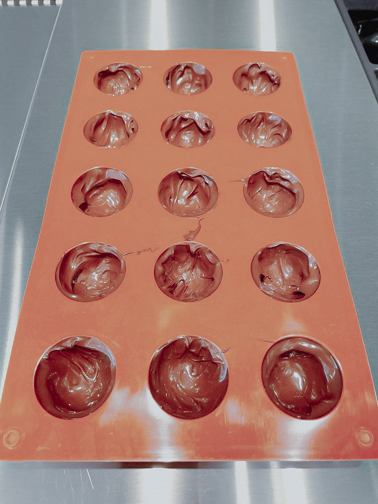 - Repeat until all moulds are coated in the chocolate then place in the fridge to set