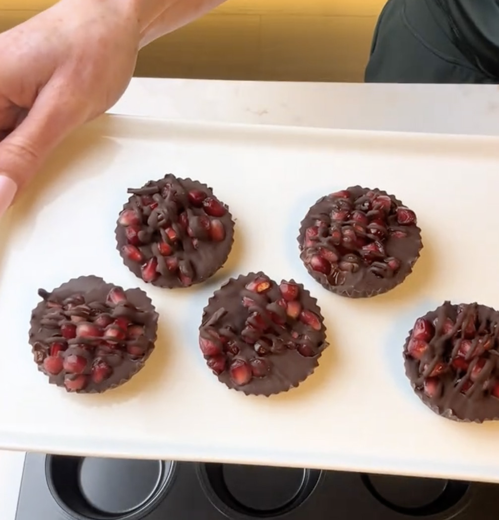 The secret here is using good quality dark chocolate paired with fresh, juicy pomegranate seeds. The richness of the chocolate melts into the bright, tart crunch of the fruit, creating a bite that feels indulgent but still fresh and light.