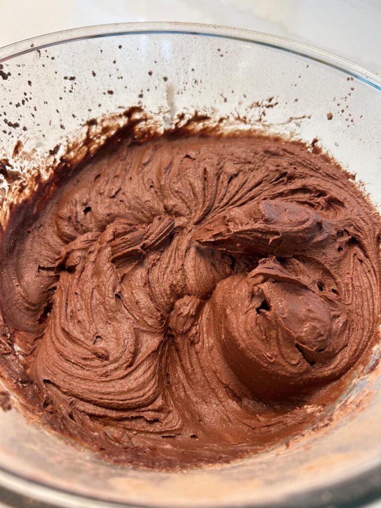 • Beat together the butter, powdered sugar, cocoa powder, vanilla extract and salt then beat in the heavy cream. Add a little more cream if the mixture is too thick.