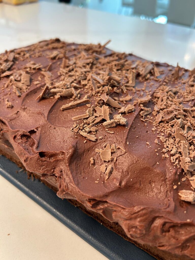 And let’s not forget the frosting. A dreamy blend of cocoa, butter, powdered sugar, and cream, it’s whipped until smooth and silky. Spread generously over the cake, it’s the kind of frosting that makes you want to lick the bowl clean. I like to finish it with curls of chocolate or even just a simple grating for that little extra flourish.