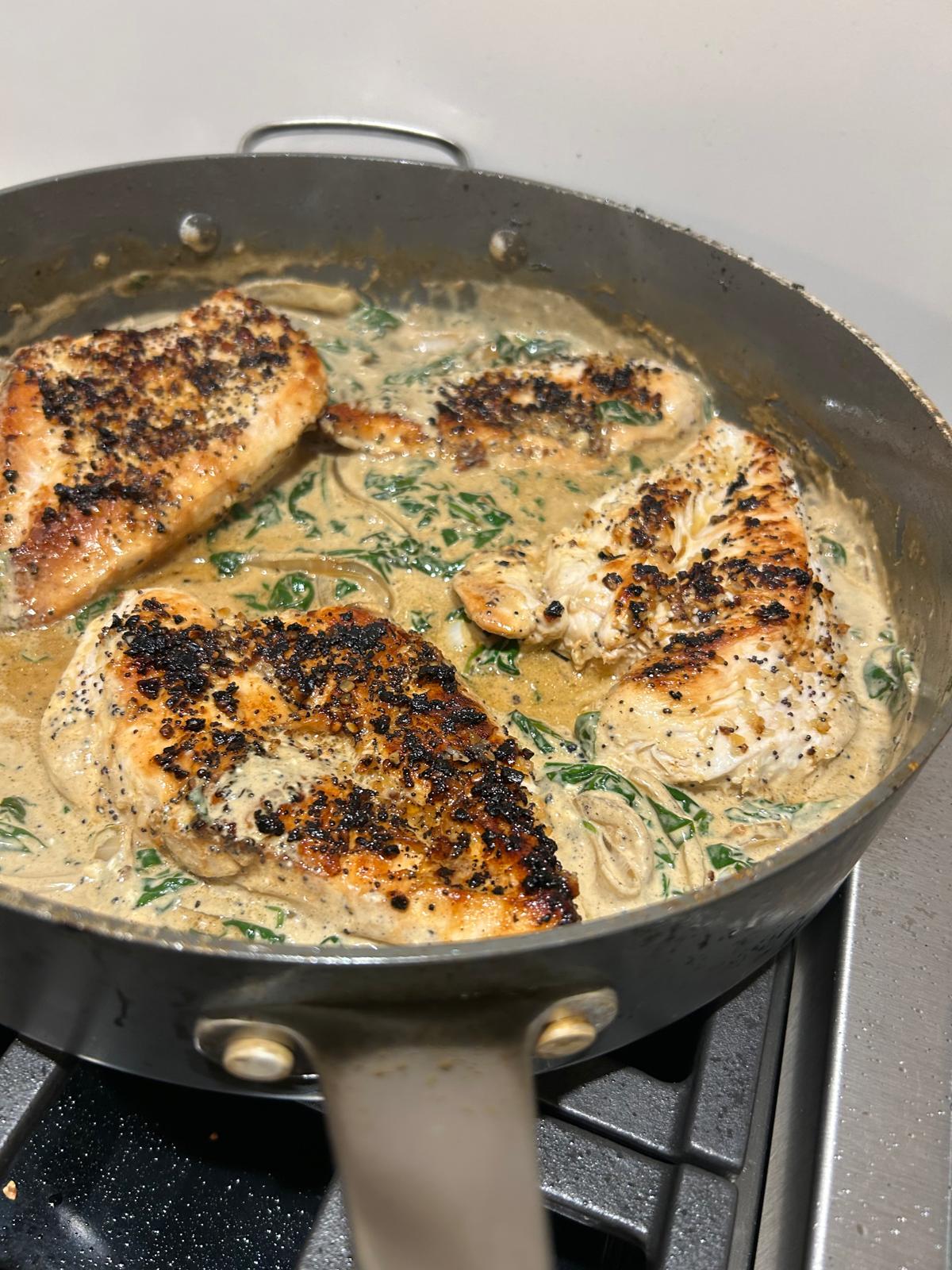 This is a mouth watering 30 minute dinner. Creamy spinach sauce and delicious everything bagel seasoning makes this a winner of a chicken dinner.