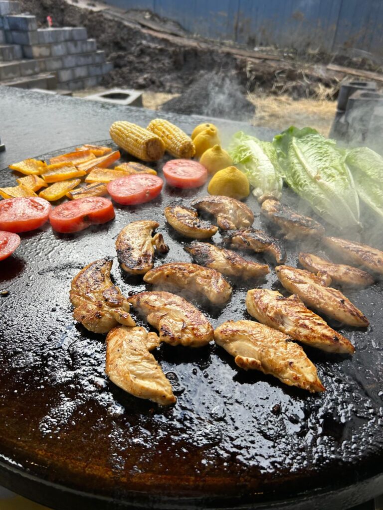 • Once everything is ready, heat a large griddle pan over a medium heat and brush with olive oil. (You will see from my images that I cooked this on my large outdoor hotplate but it is just the same as a grill pan)