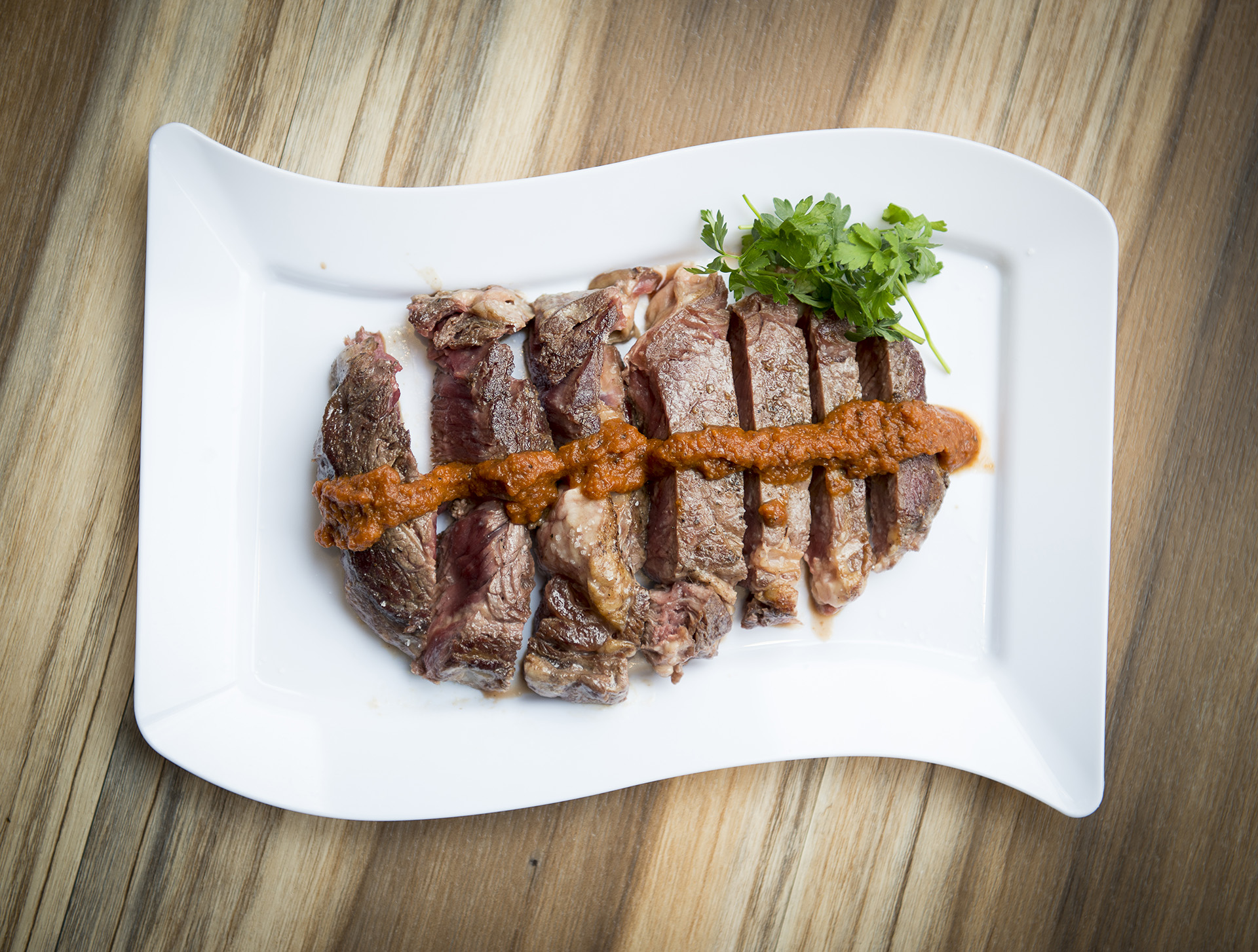 Grilled Rib Eye with Spicy Tomato Sauce