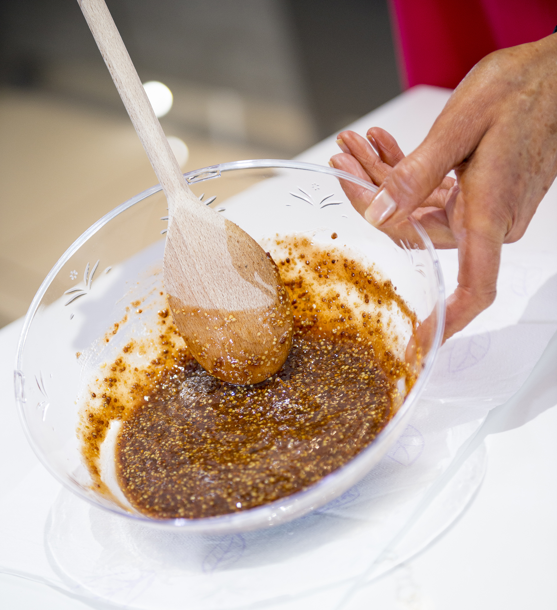 - Whilst cooking, mix together the mustard, ketchup, sugar and Worcestershire sauce and some salt and pepper.