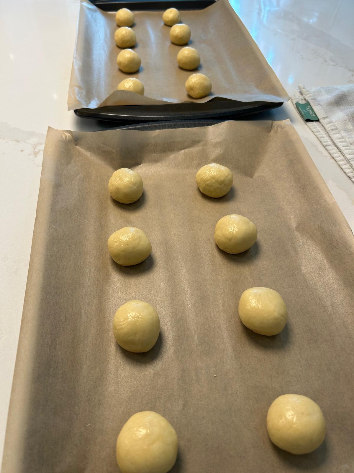 - Take teaspoons of the dough and roll into inch sized balls then place onto a baking sheet leaving a two inch gap to allow for rising and spreading during the baking process.