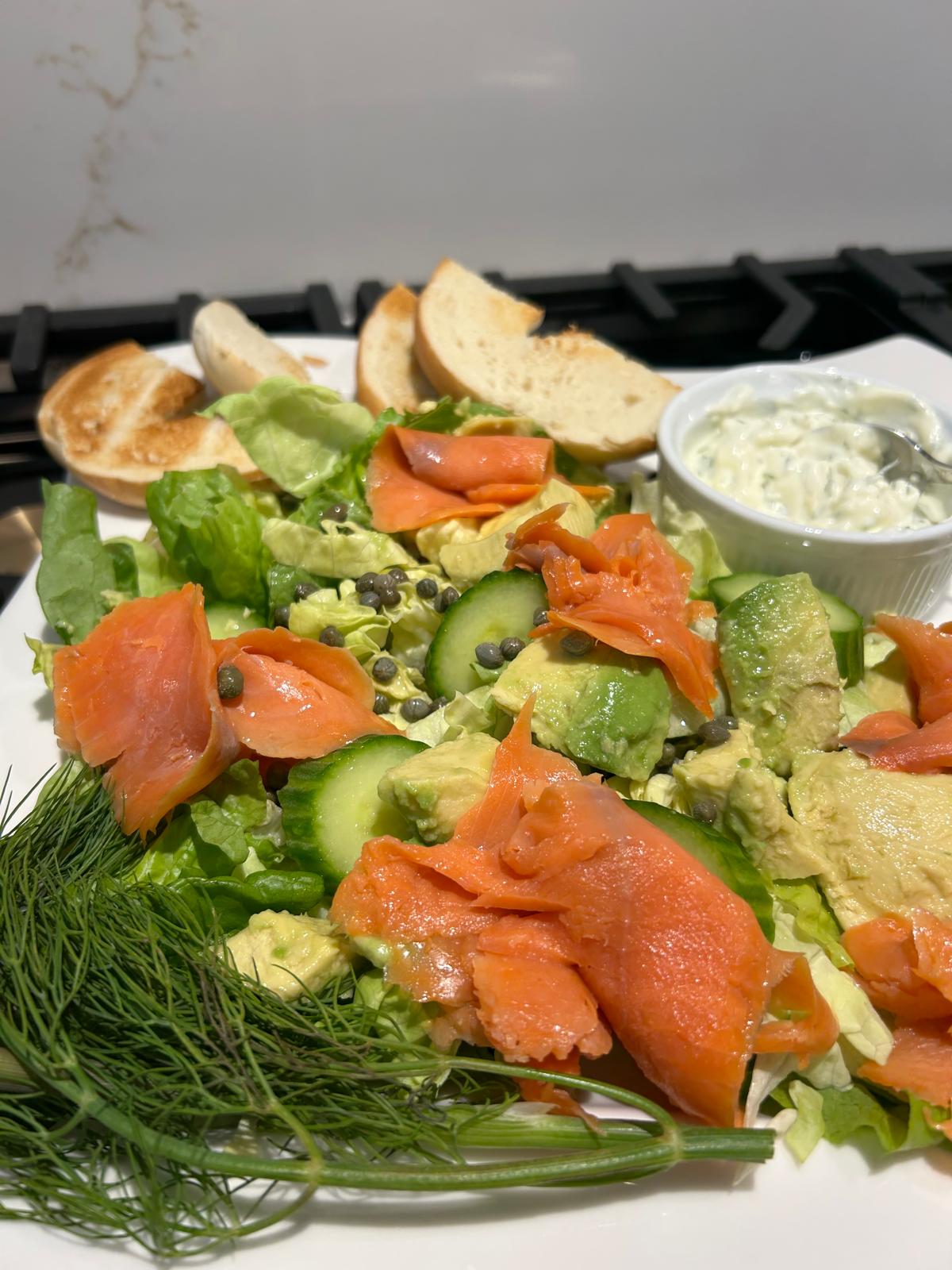 This recipe is the perfect way to enjoy the irresistible pairing of smoked salmon and cream cheese in a lighter, fresher form. Ready in just ten minutes, it delivers all the comfort and flavor of a deli-style bagel but in a salad that feels modern and vibrant.