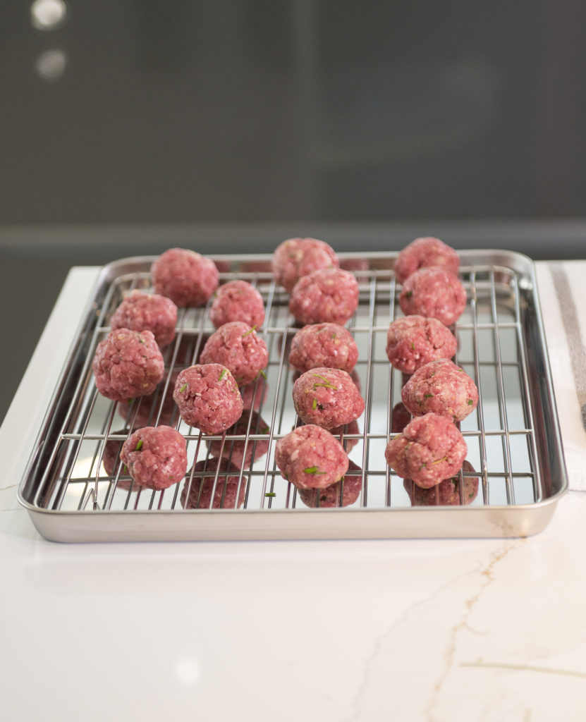 - Roll into one inch size balls (you can freeze them at this point if the beef was not already frozen)