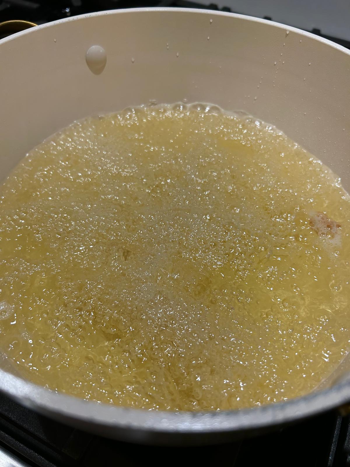• Cook until golden brown on both sides (around three minutes) then remove and drain on kitchen paper.
