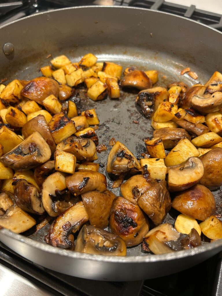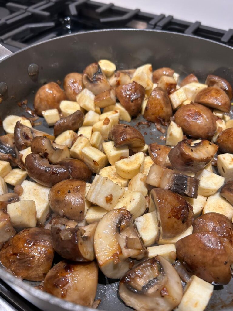 - Cook for around 6–7 minutes until the mushrooms have reduced in size, turned golden brown, and the liquid has evaporated.