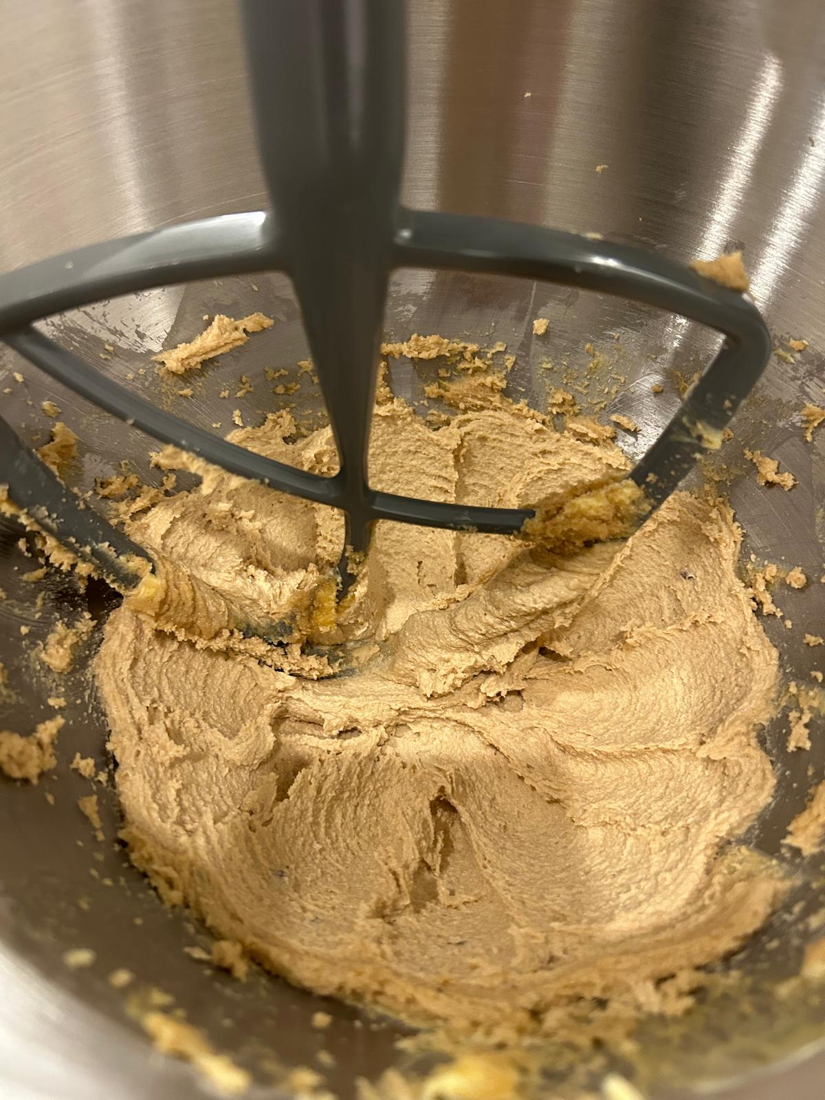 • Cream together the butter and sugar until light and fluffy (approx. five minutes).