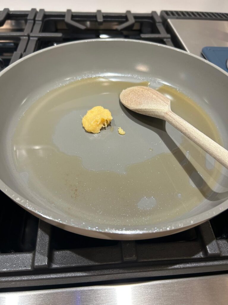 • Heat the sesame oil in a small pan and add in the ginger and also to cook for just thirty seconds until fragrant.