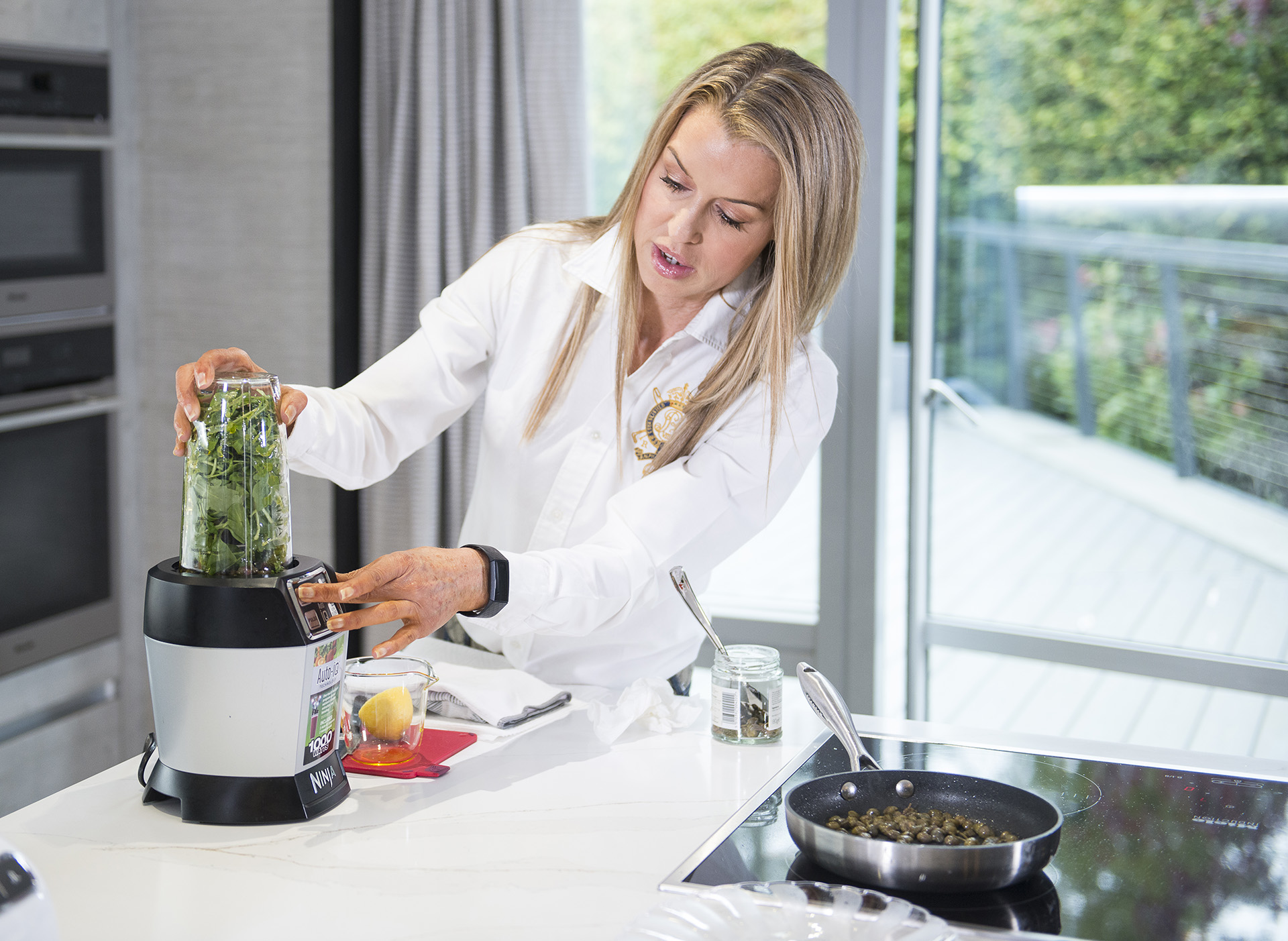- Place the rocket, remaining two tablespoons of capers, lemon juice and olive oil into a food processor and blitz until smooth.