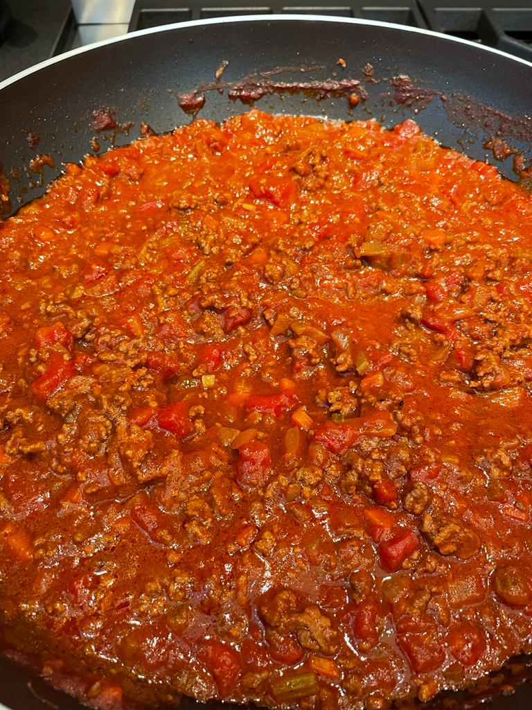 This dish holds a special place at our table—and in Phil’s heart! The slow simmer might seem like a labour of love, but it’s mostly just giving it the occasional stir while it works its magic. Trust me, the depth of flavour is worth it. We love serving it with baked jacket potatoes and salad on day one (a proper British tradition!) and twirling it with pasta the next—pure comfort food.