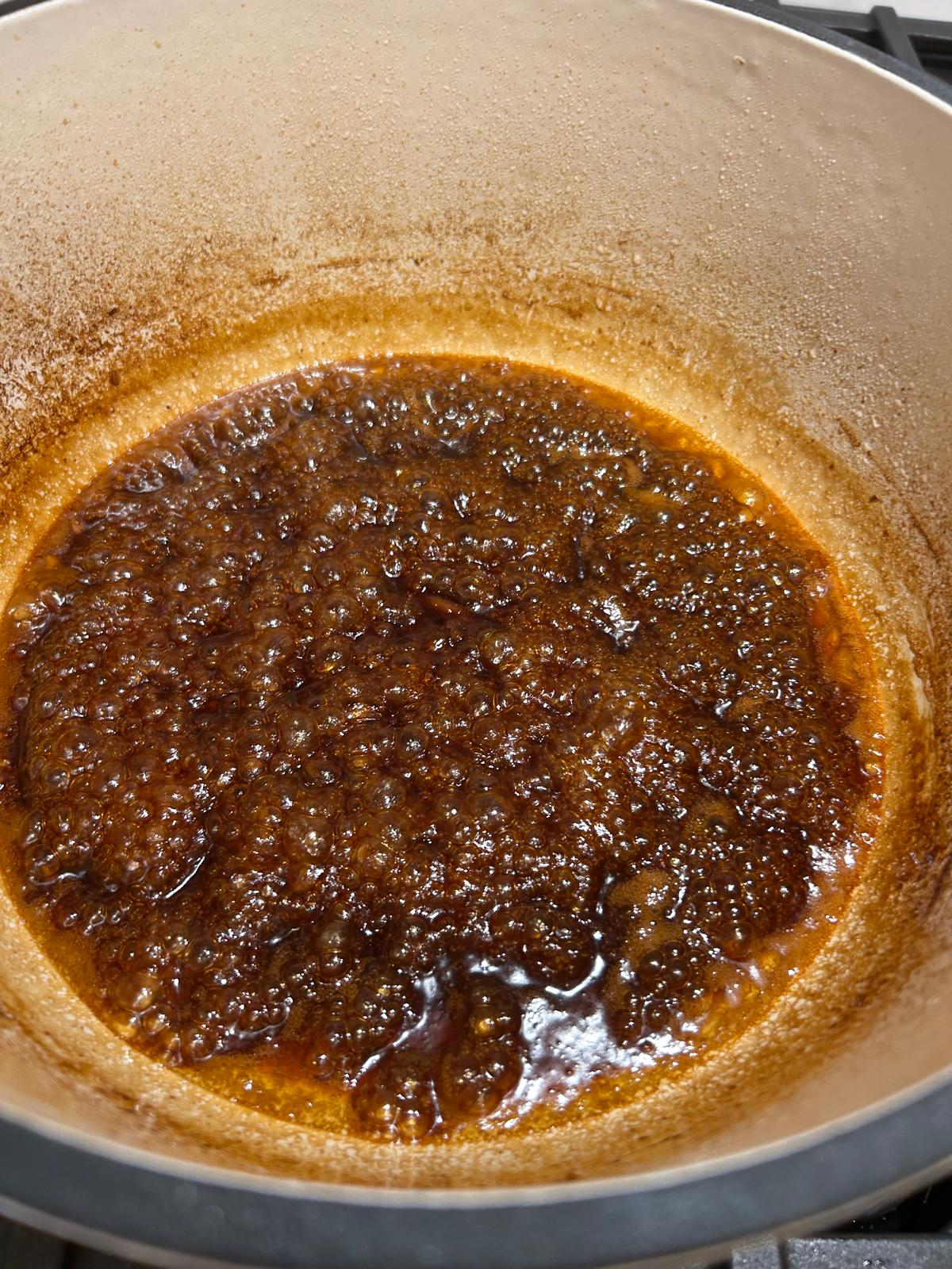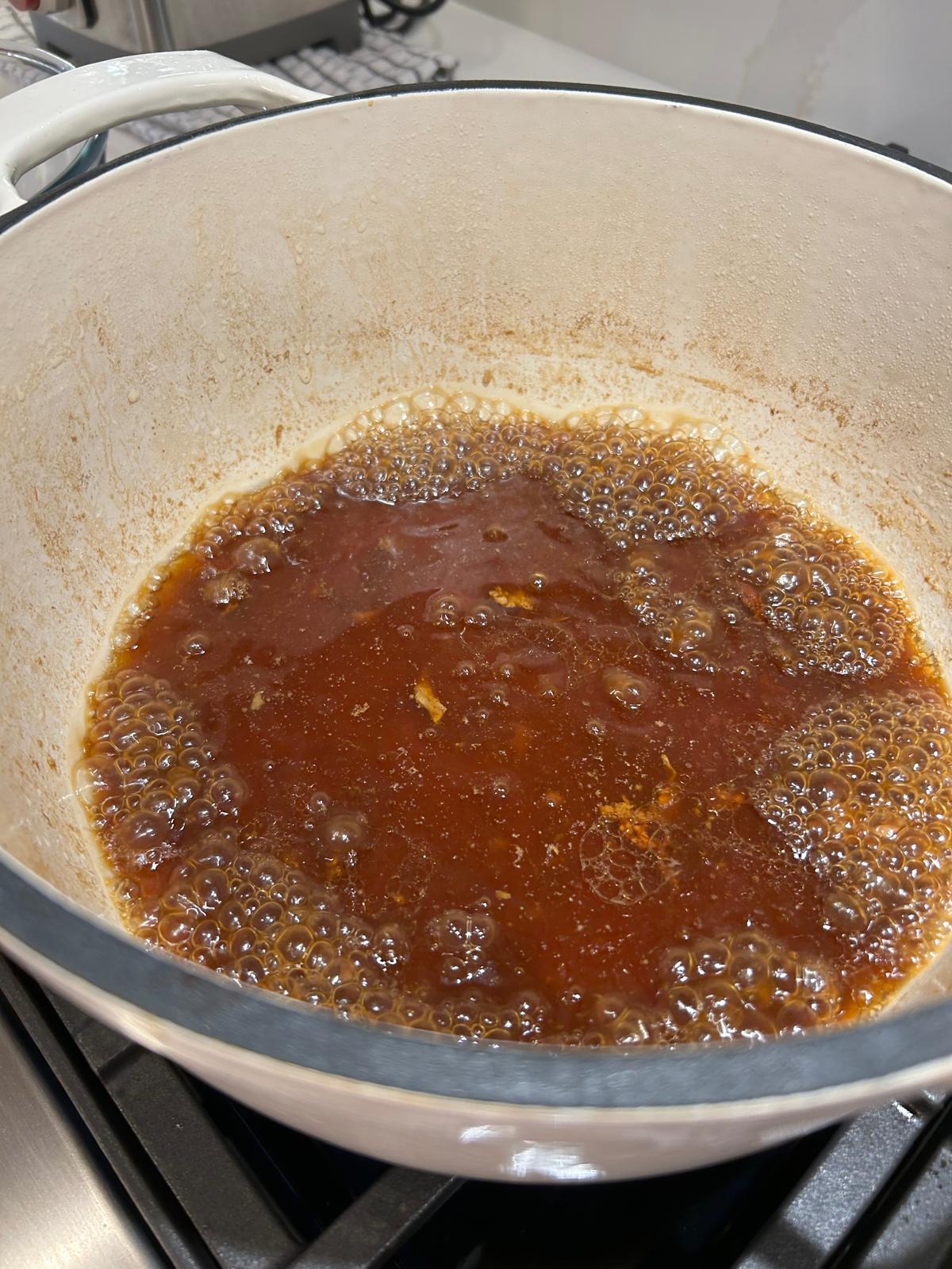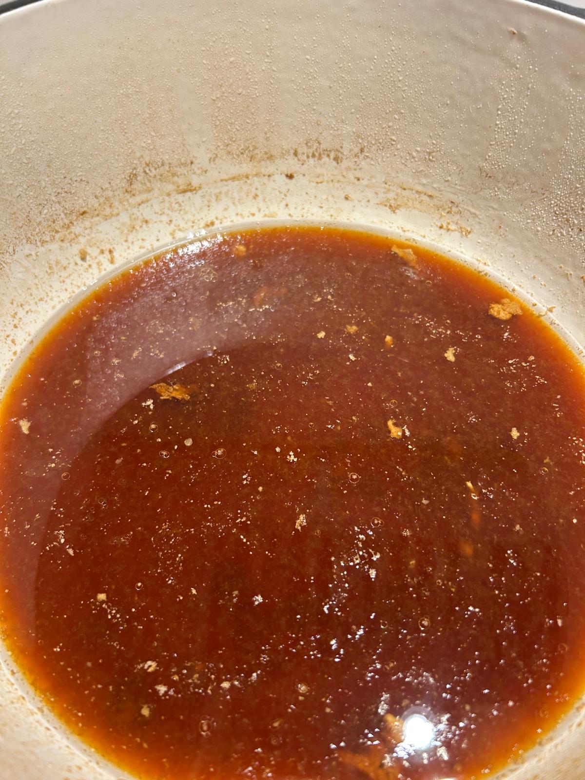• Place the remaining liquid back on the heat and simmer for around 15 minutes until it reduces to around one cup.