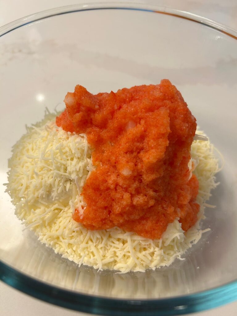 - Add this mixture into a bowl with the cream cheese, cheddar, salsa and cumin and mix to combine.