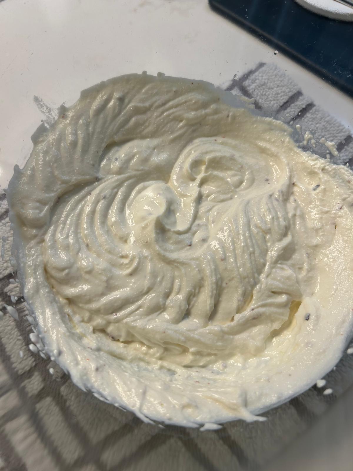 - Whilst mixing add in two teaspoons of olive oil and mix until smooth and fluffy.