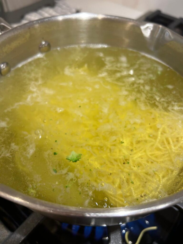 - While the steak is cooking, add chow mein noodles to the same boiling water used for the broccoli and cook for 3 minutes. Drain and rinse.