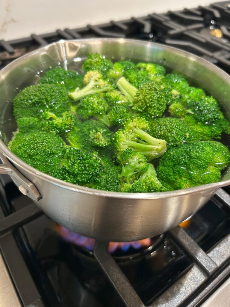 - Bring a pan of water to the boil and cook the broccoli for around 4 minutes until just starting to soften. Remove from the water and set aside.