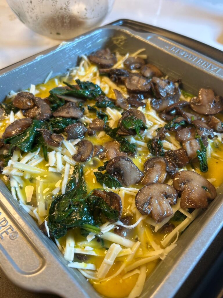 This spinach and mushroom sheetpan omelette is the kind of recipe that makes mornings feel calmer. It is hearty, comforting, and surprisingly easy to pull together. Best of all, it feeds everyone at once, with no flipping or standing at the stove. That alone makes it a keeper for busy weekends or relaxed brunches.