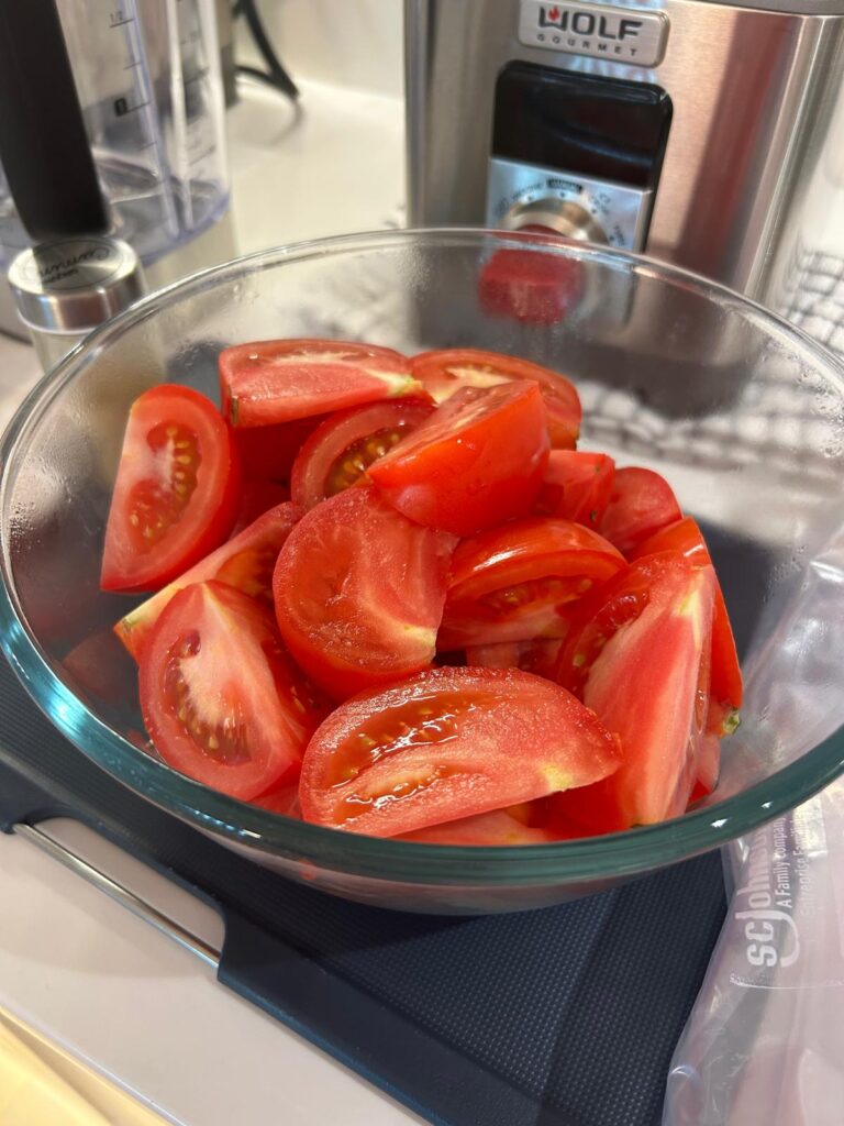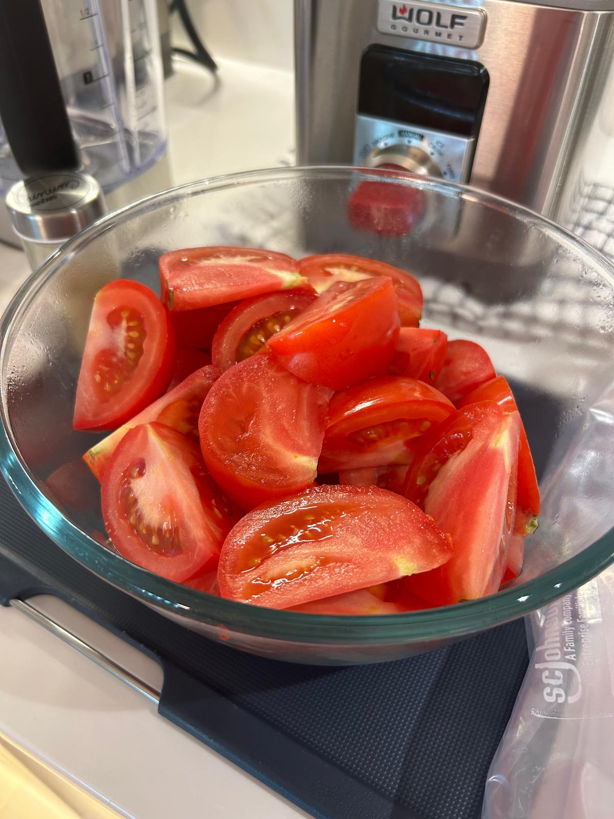 - Place the tomatoes, garlic, onion, cumin, and salt into a blender and blend until smooth.