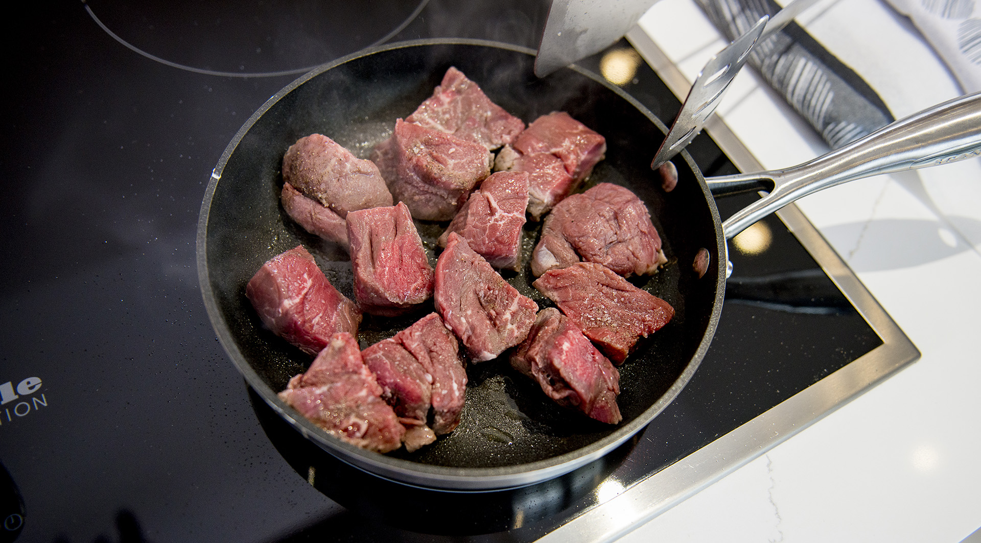 - Reduce the heat and simmer for around 20 minutes. Add in the browned fillet steak for the last five minutes.