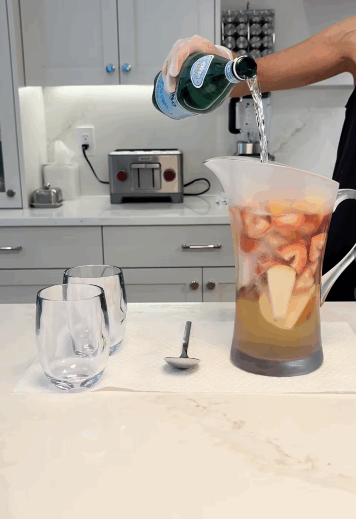Just before serving, add the club soda and stir.