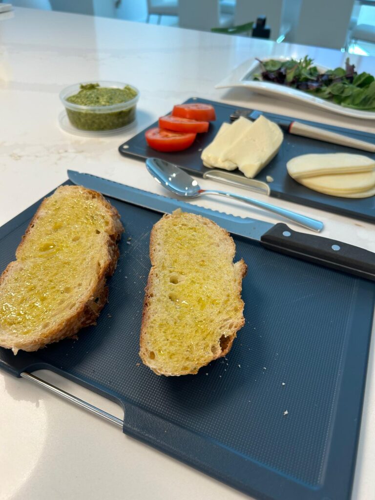 Top with the remaining slices of sourdough, pesto side down.