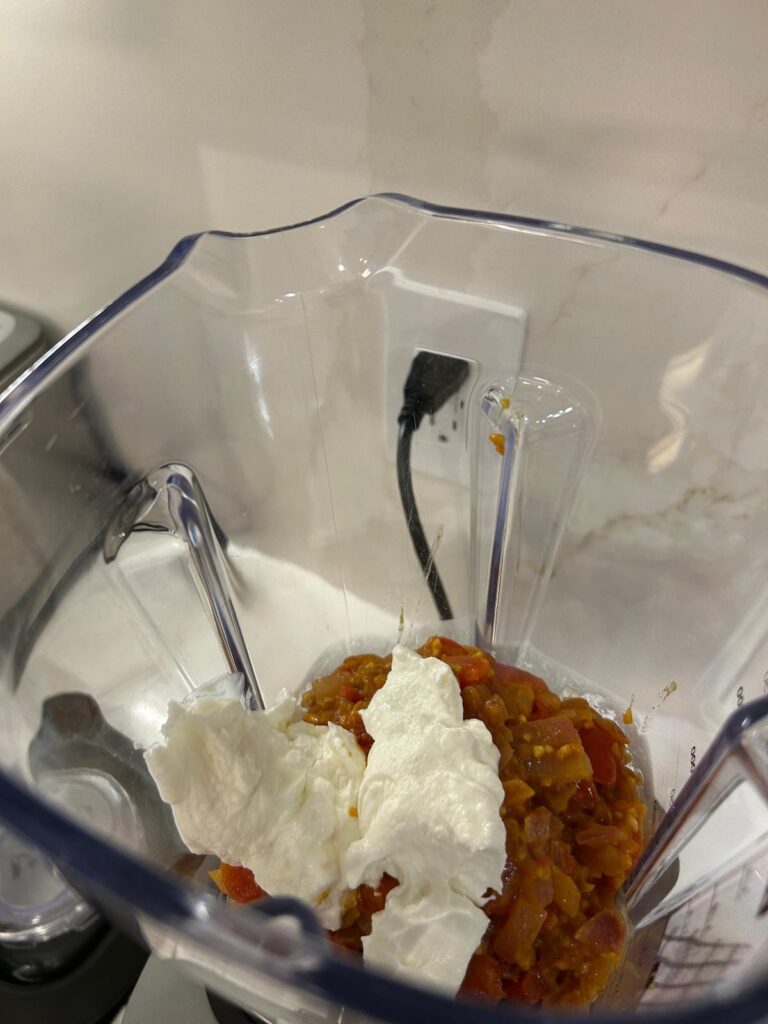 - Pour this into a blender and add in the yoghurt. Blend until smooth.